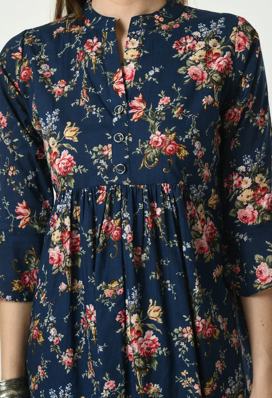 MAURYA Women's Aqua Blue Colour Printed Straight Cotton Kurti (MKT153)