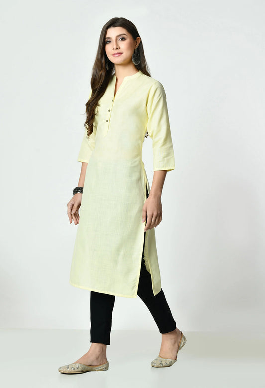 MAURYA Women's Light Yellow Colour Solid Straight Cotton Kurti (MKT149)