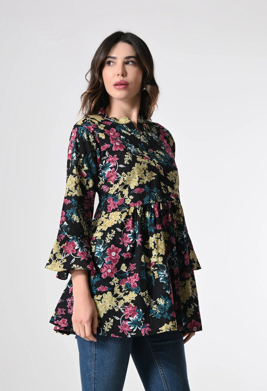 MAURYA Women's Black Color Floral Print Regular V Neck Top (MTOP006)