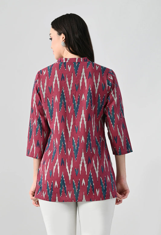 MAURYA Women's Pink Color Ikkat Print Regular V Neck Top (MTOP008)