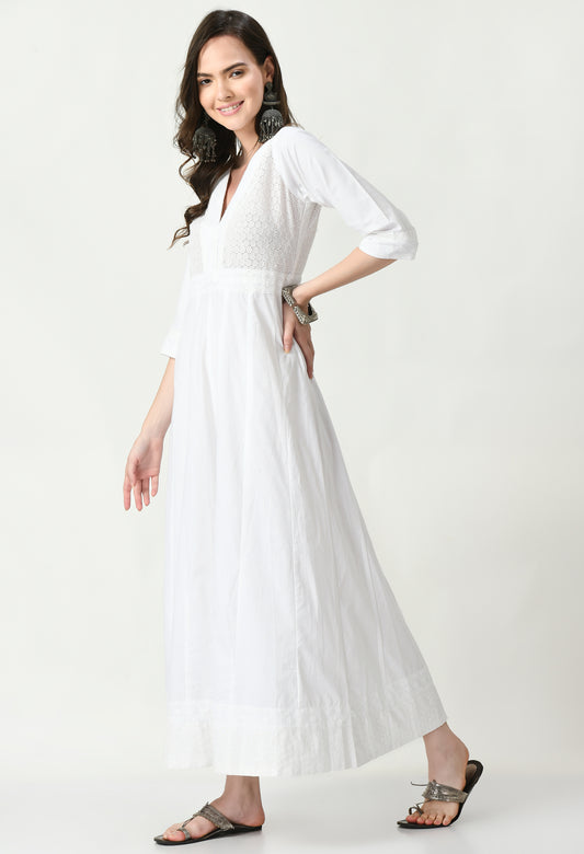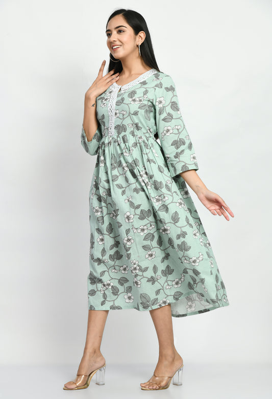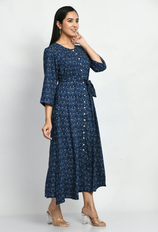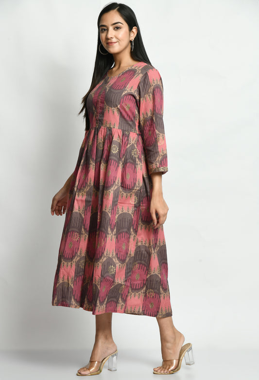 MAURYA Women’s Pure Cotton A-Line Long Dress for Casual & Festive Wear