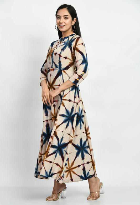 MAURYA Women’s Rayon A-Line Long Flared Dress for Casual & Festive Wear