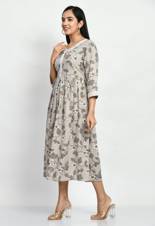 MUARYA Women’s Cotton Blend A-Line Long Dress for Casual & Festive Wear