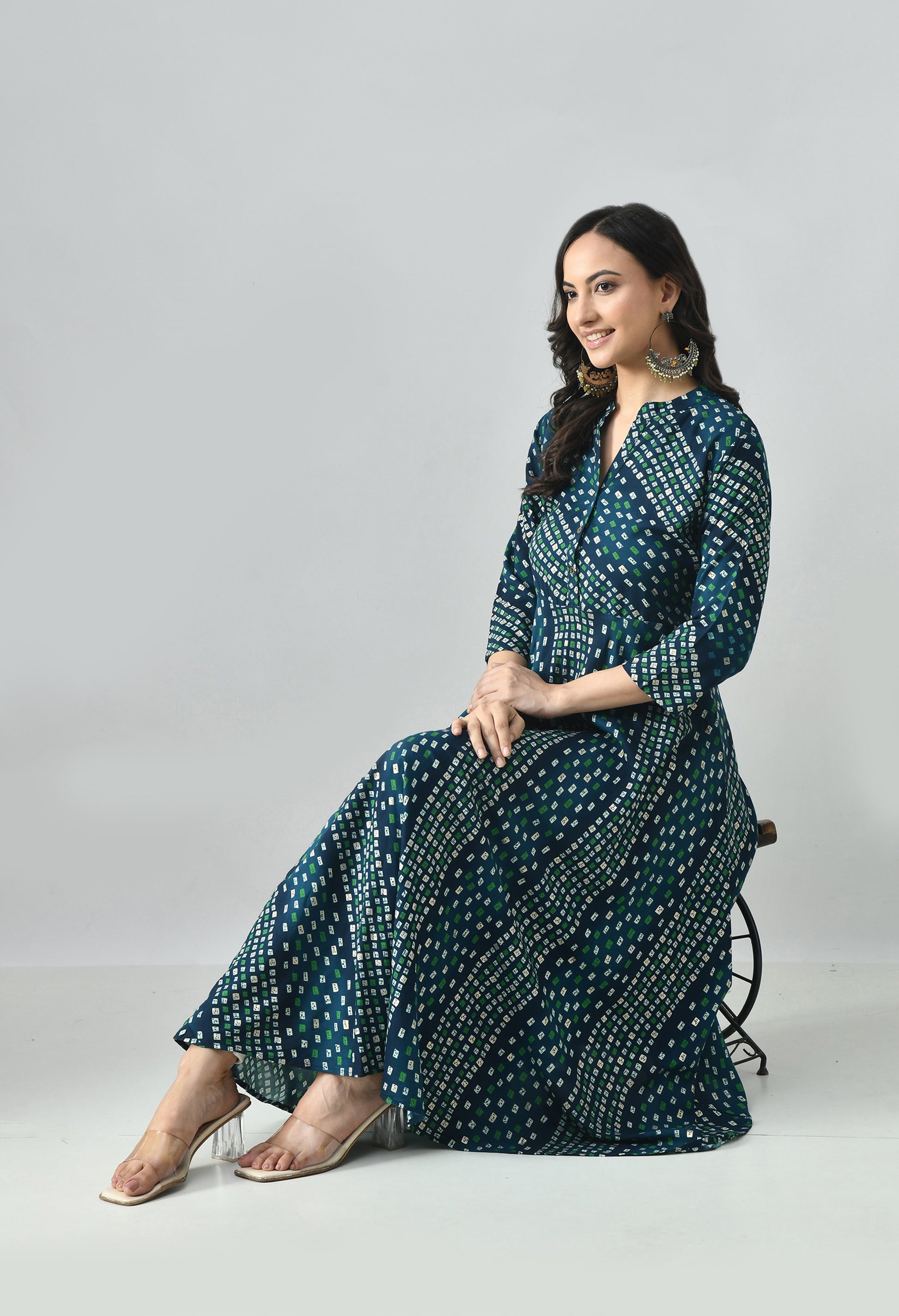 Step out in effortless style with this rayon A-line dress, designed for comfort and graceful movement. Featuring an all-over ethnic-inspired print and a flattering flared silhouette, this dress is lightweight, breathable, and perfect for daily wear, casual outings, or festive styling. Easy to wear and easy to style.