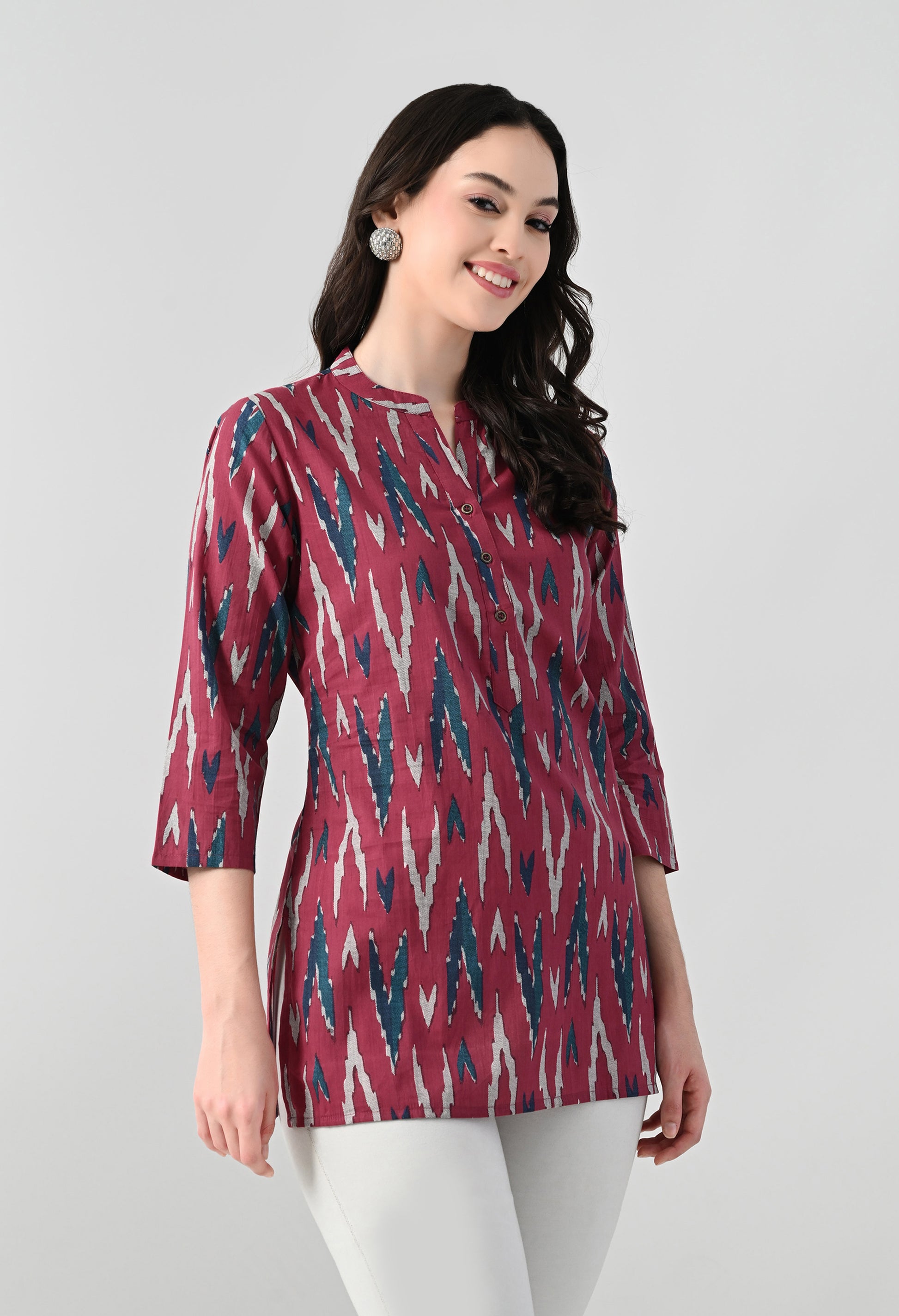 Easy to pair with jeans, trousers, or leggings, this cotton blend printed top is ideal for office wear, casual outings, daily wear, shopping, or small gatherings. A versatile wardrobe essential for women who prefer comfort with elegant styling.