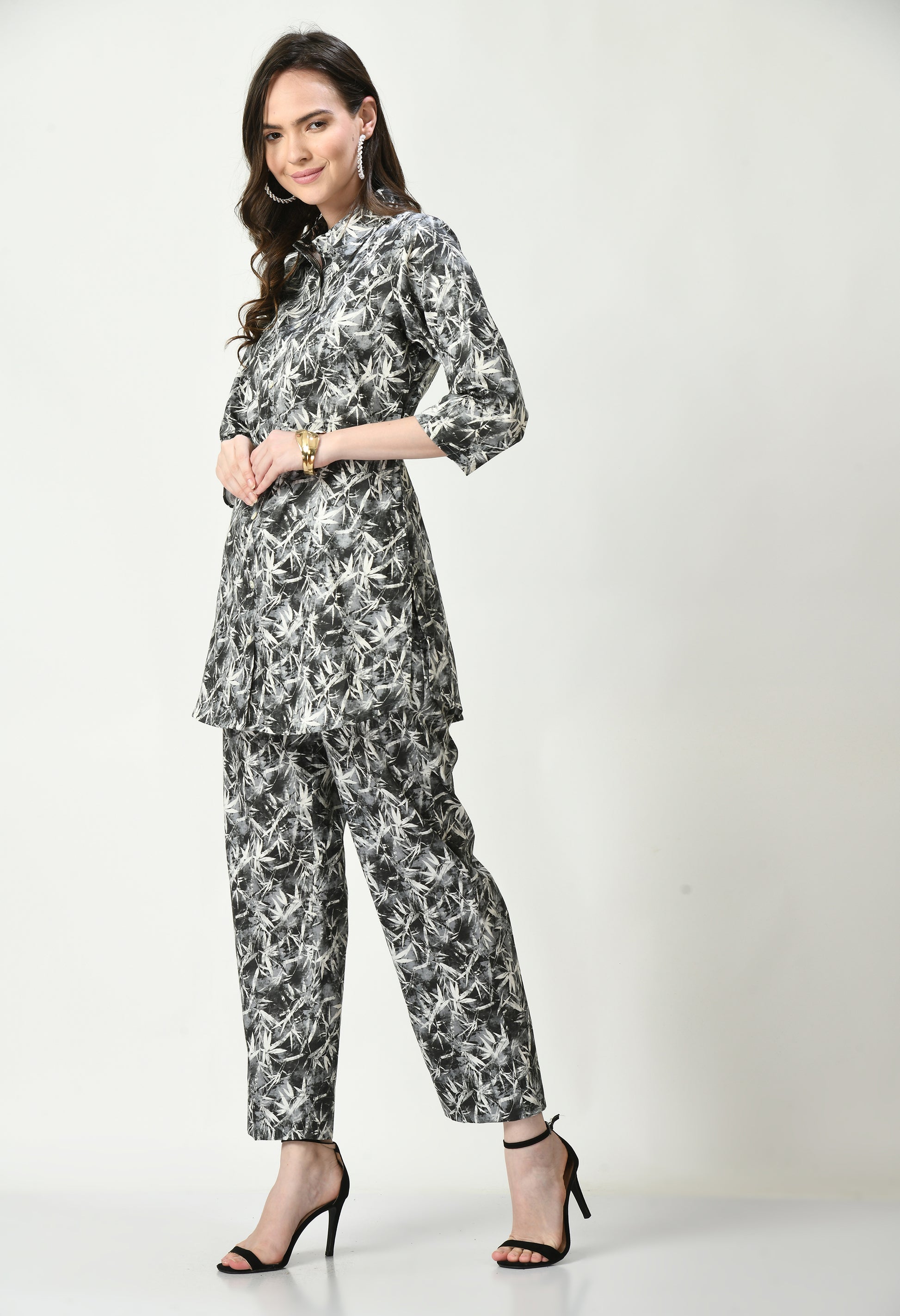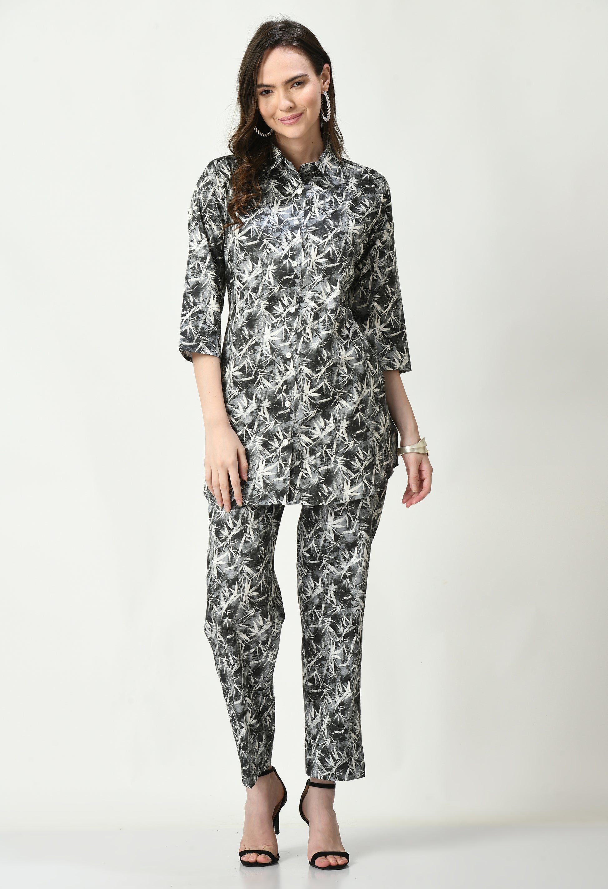 This women’s co-ord set is made from soft and breathable rayon fabric for all-day comfort. It includes a printed shirt-style top with 3/4 sleeves and matching straight-fit pants. The lightweight fabric makes it easy to wear in any season.