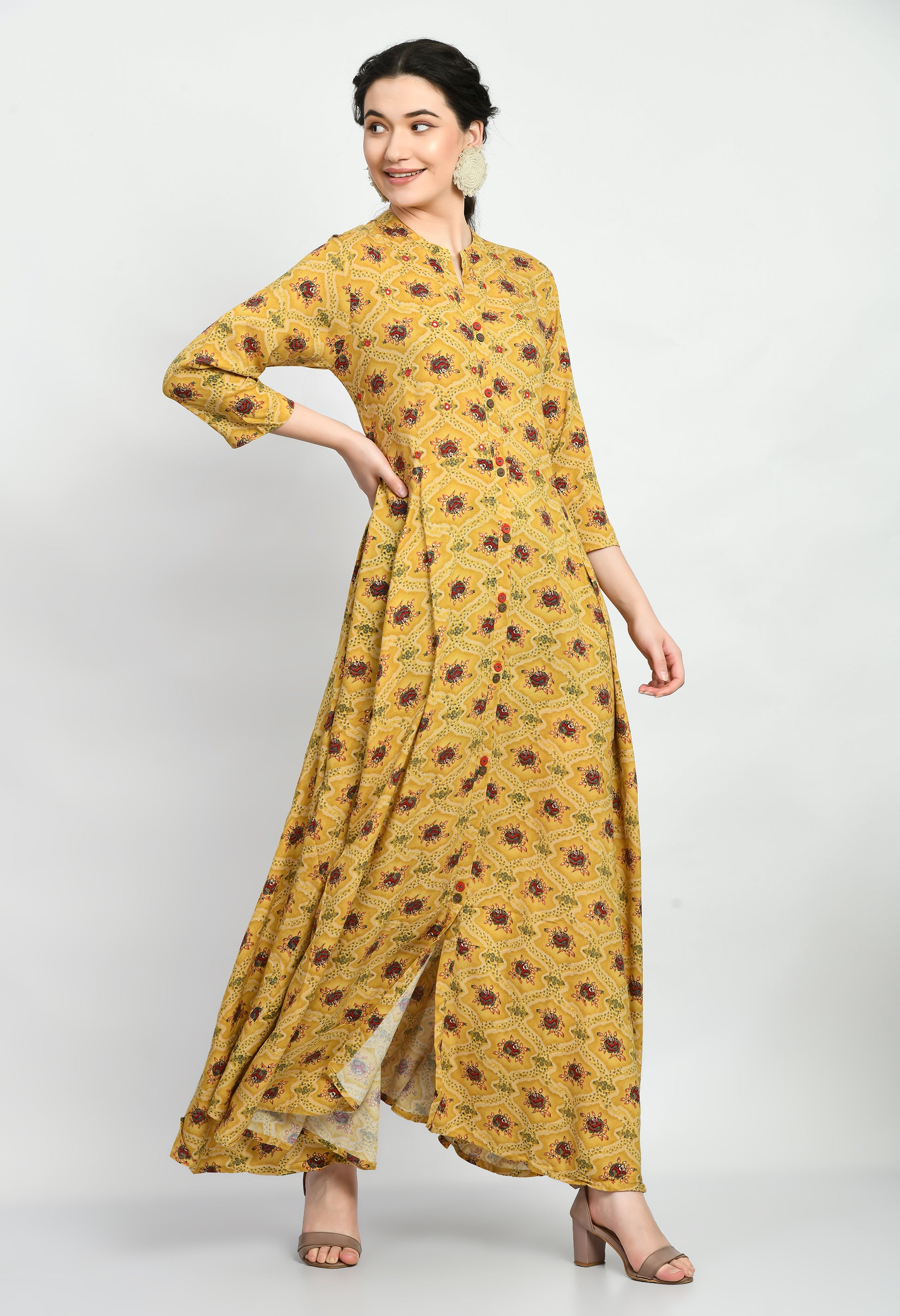 Upgrade your wardrobe with this elegant women’s A-line dress made from premium-quality rayon fabric that feels soft, breathable, and lightweight on the skin. Designed in a flattering flared silhouette, this long dress offers a graceful flow and comfortable fit for all-day wear.