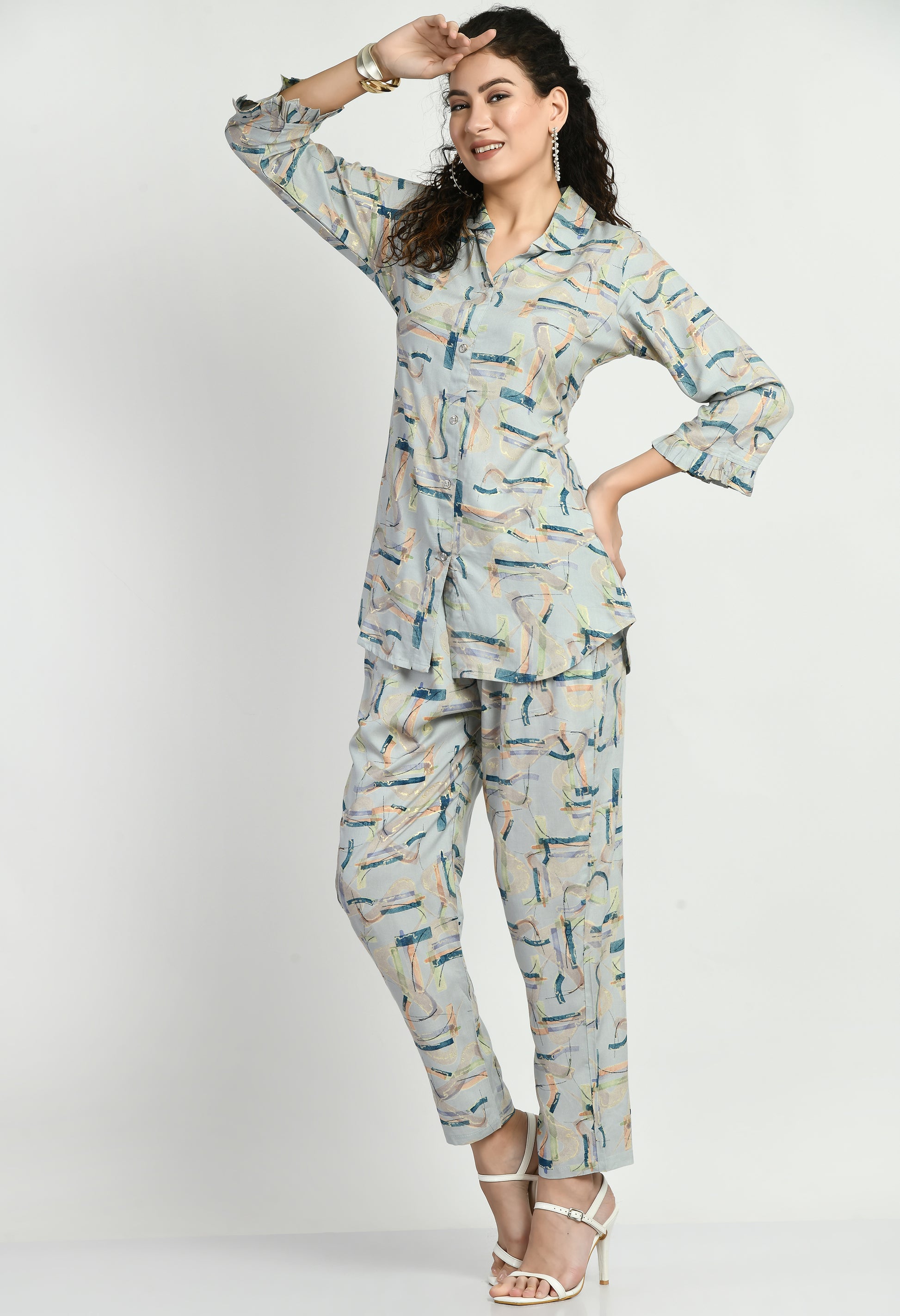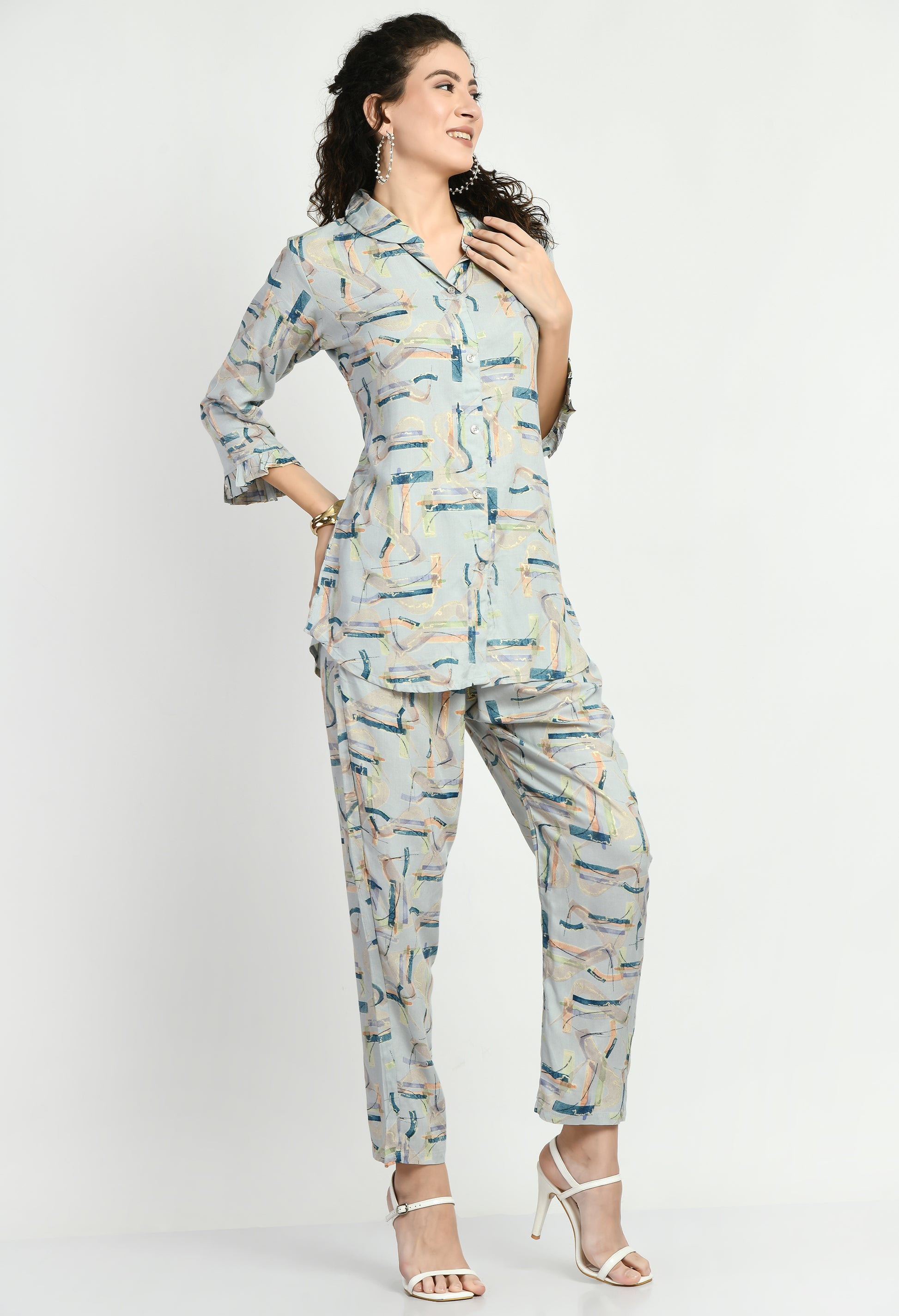 MAURYA Women’s Rayon Printed Co-Ord Set | Shirt Top & Pants