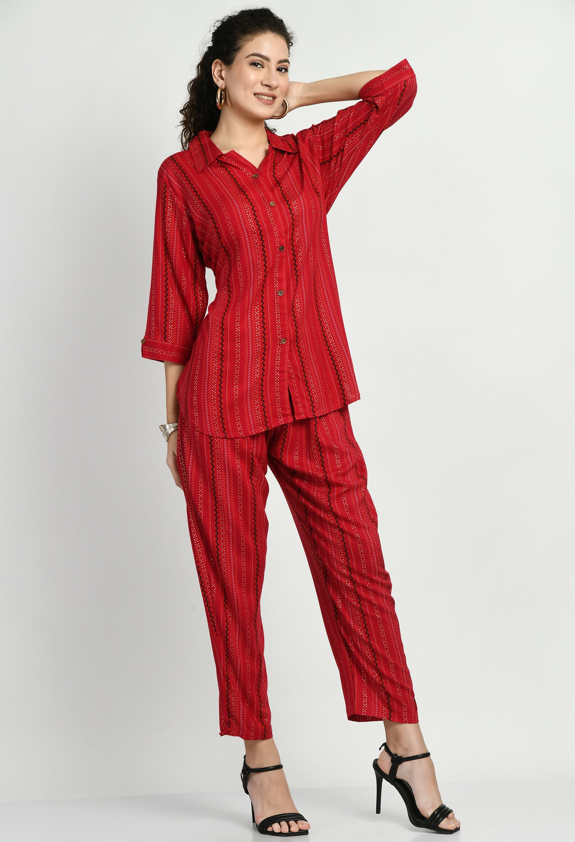 MAURYA Women’s Rayon Printed Co-Ord Set | Shirt Top & Pants