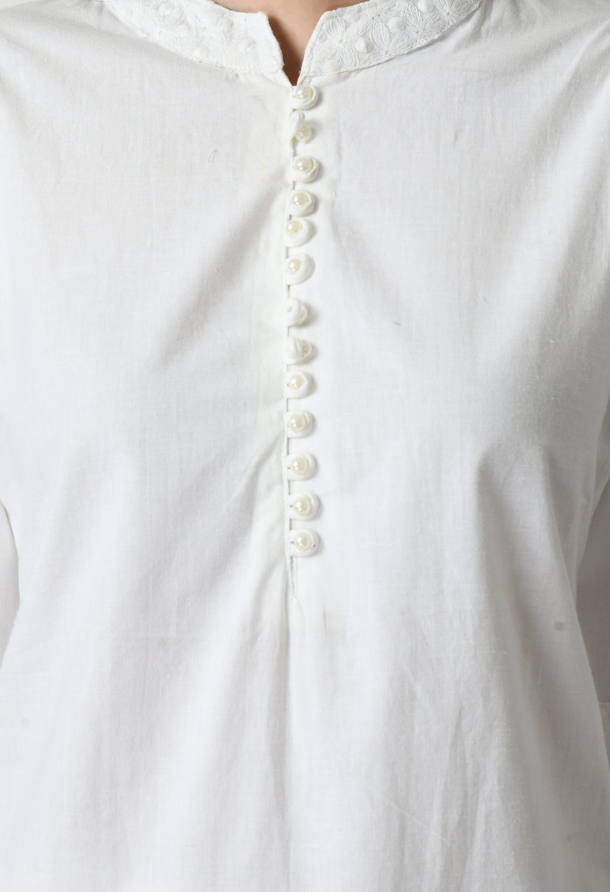 Stay comfortable and stylish with this women’s pure cotton co-ord set, designed for effortless everyday wear. Crafted from breathable and skin-friendly cotton fabric, this set features a solid pattern that gives a clean and elegant look. The top comes with a smart straight silhouette, a minimal button placket, and 3/4th sleeves finished with subtle textured detailing. Paired with matching straight-fit pants featuring a coordinated solid finish and detailed hems, this co-ord set is perfect for daily wear, office use, casual outings, or relaxed gatherings.