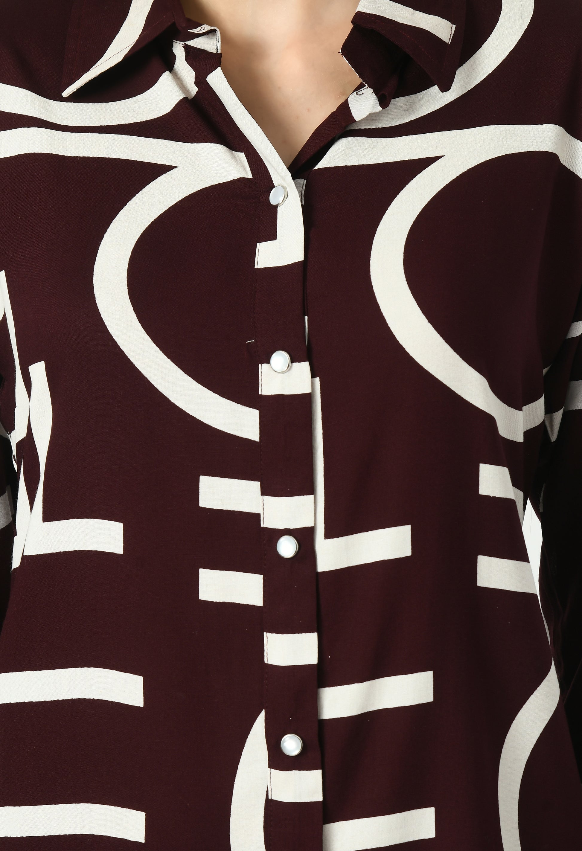The top showcases a contemporary abstract pattern with a graphic all-over print, adding a chic and fashion-forward touch. Styled with three-quarter sleeves, it offers ease of movement while maintaining a polished silhouette. The coordinated pants feature the same abstract printed design, creating a cohesive and stylish look. The soft rayon fabric ensures a smooth drape and all-day comfort, making this set suitable for all seasons.