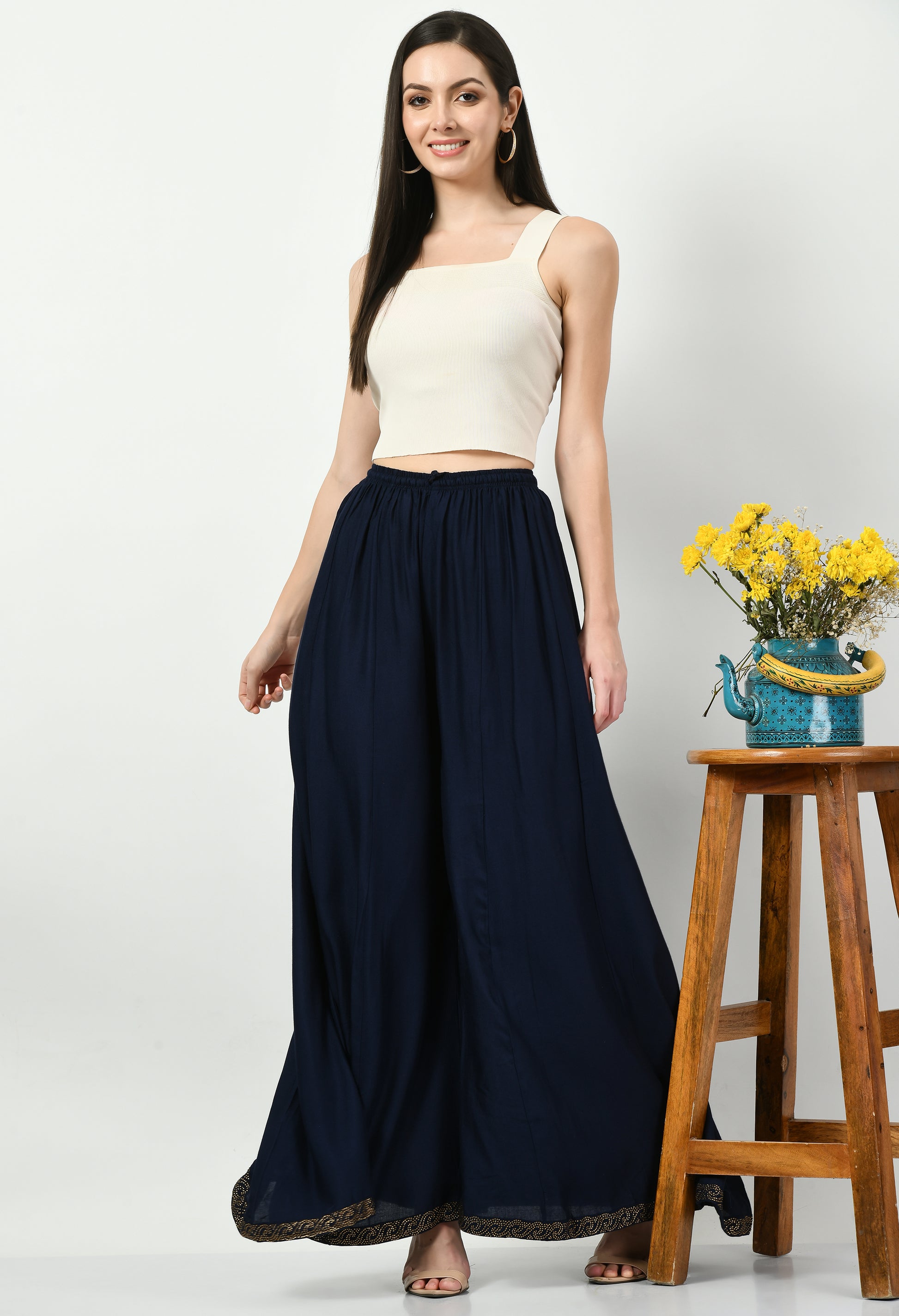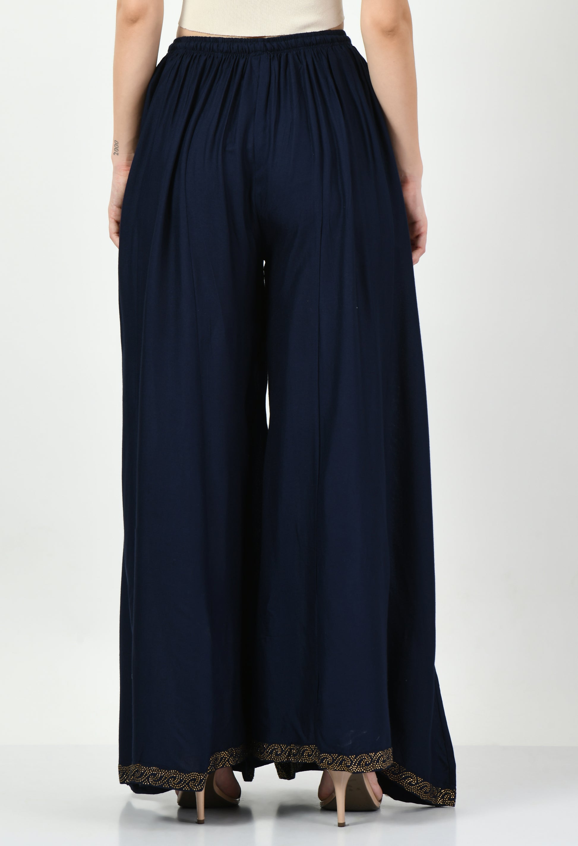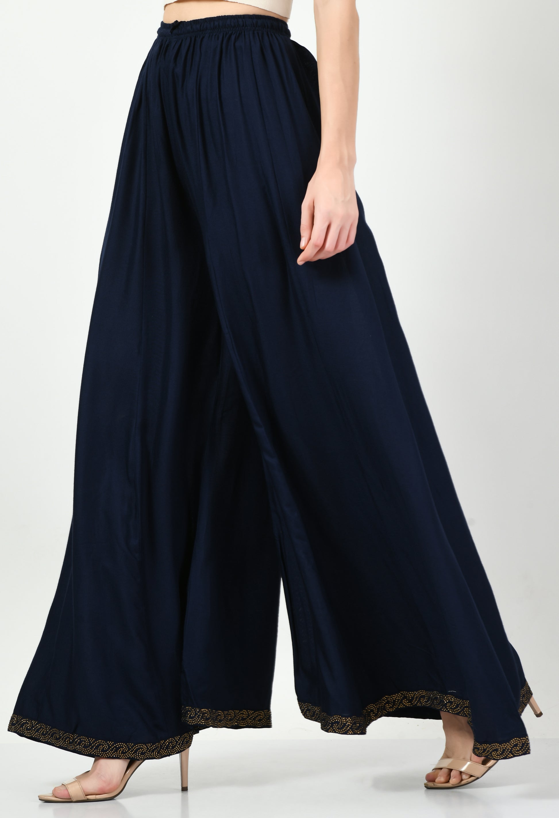 MAURYA Women Solid Rayon Palazzo with Elastic Waist & Lace Hem