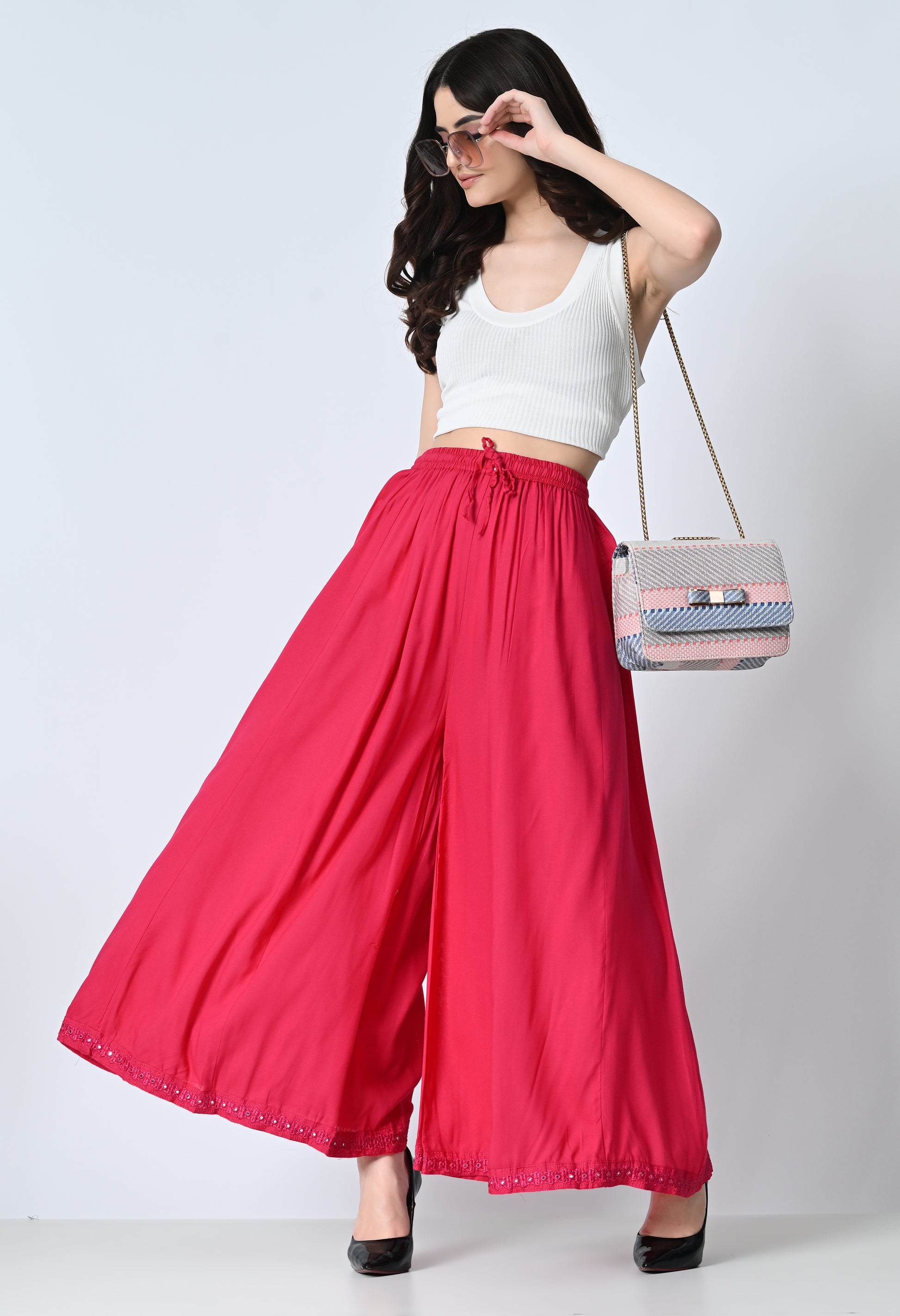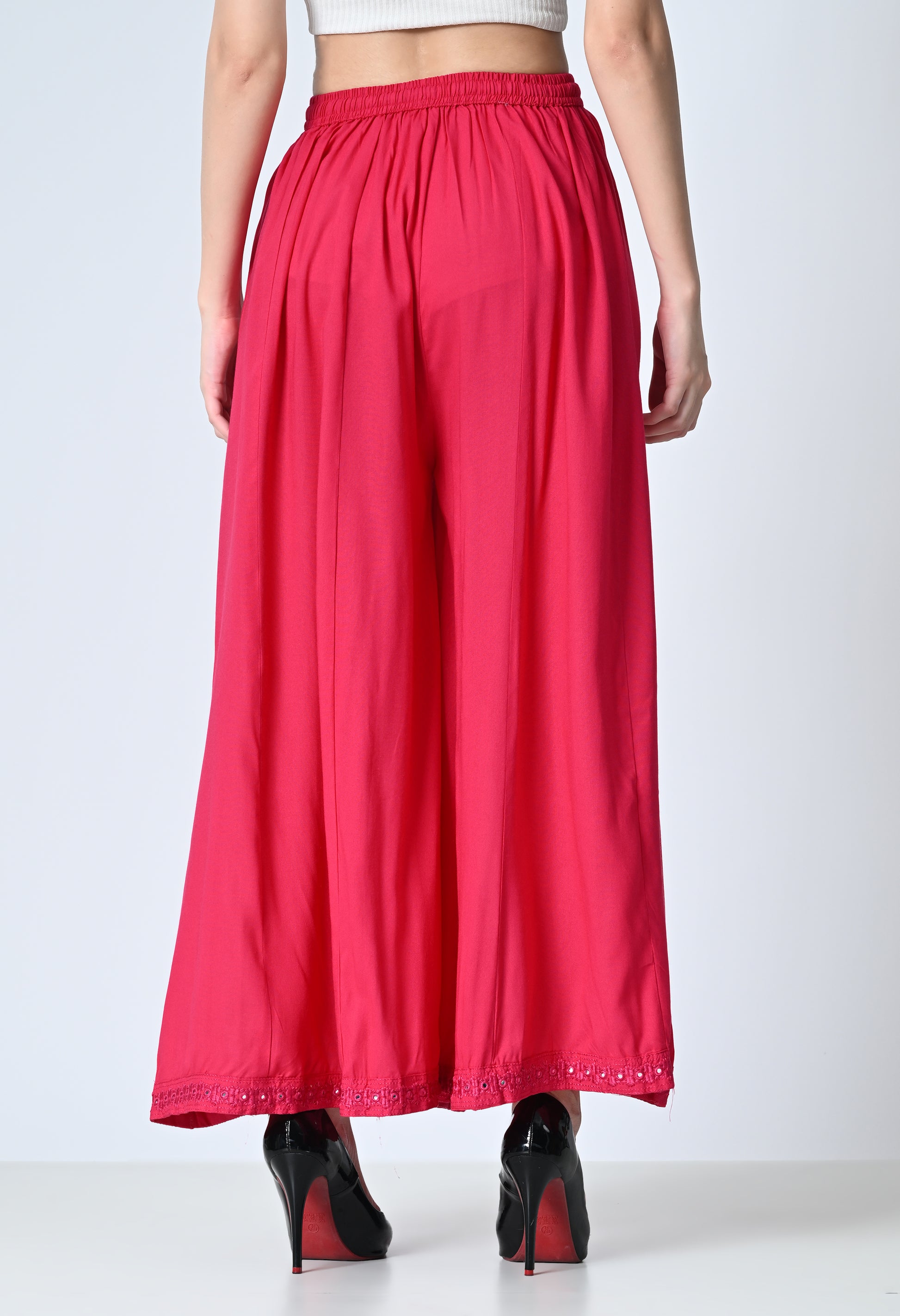 MAURYA Women Solid Rayon Palazzo with Elastic Waist & Lace Hem