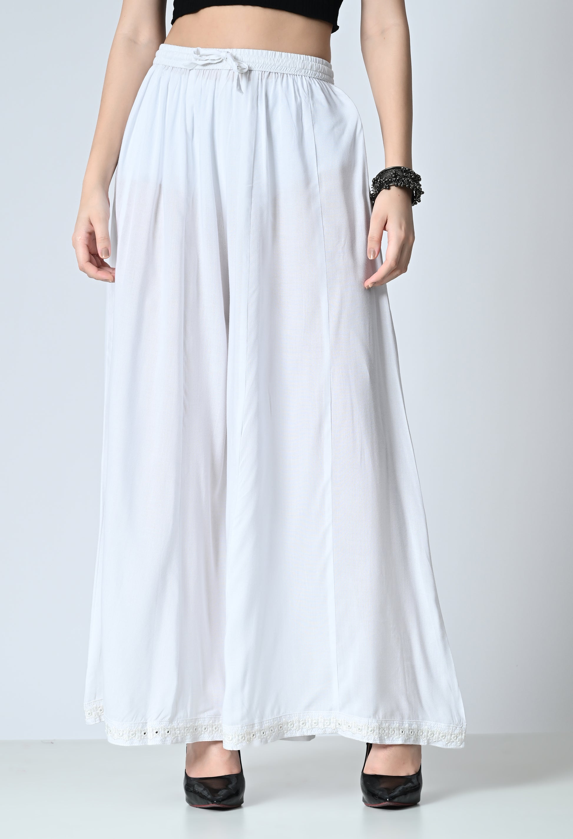 MAURYA Women Solid Rayon Palazzo with Elastic Waist & Lace Hem