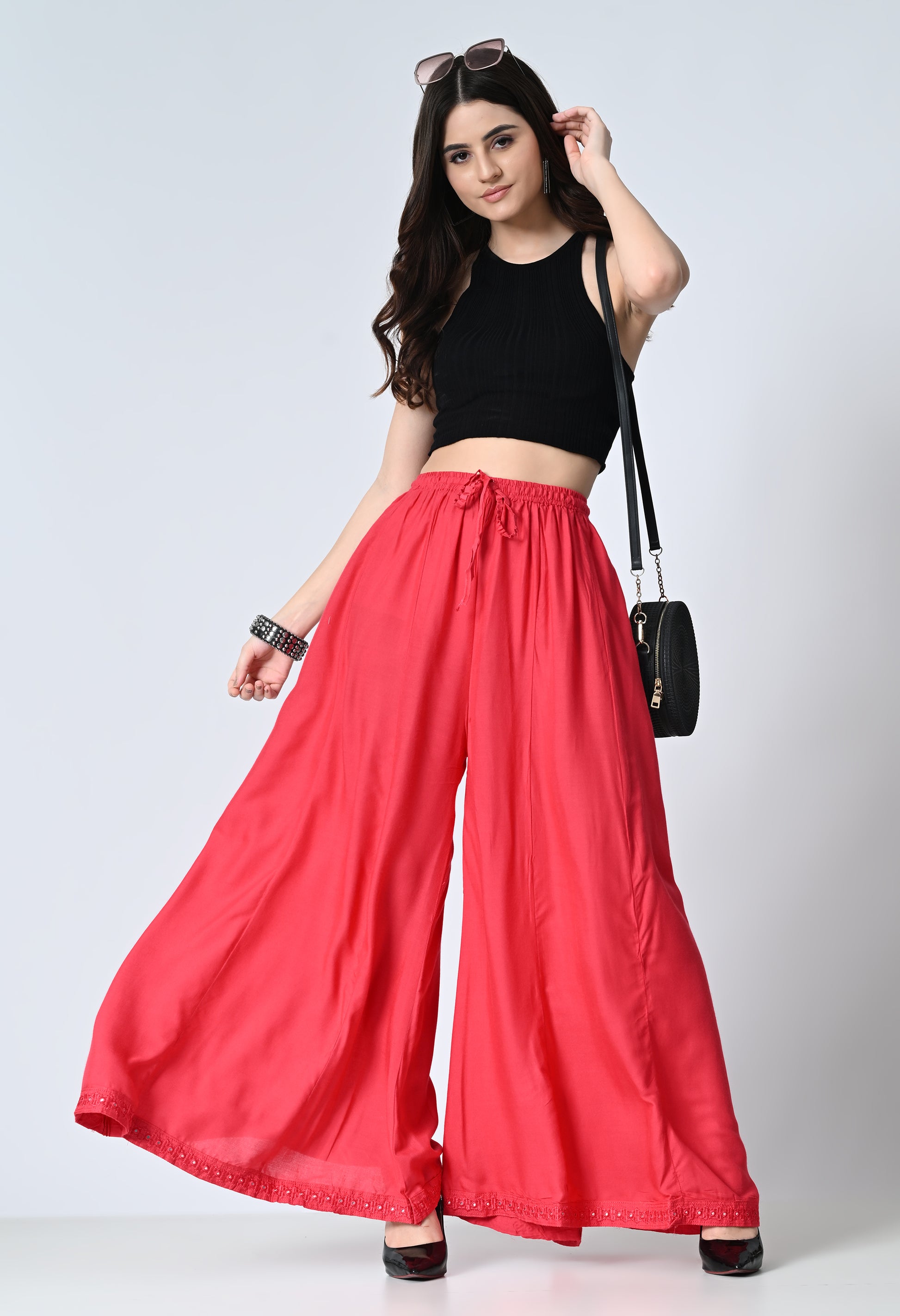 Upgrade your everyday ethnic and fusion wear with this stylish women’s solid rayon palazzo. Crafted from soft and breathable rayon fabric, this full-length palazzo offers all-day comfort with a smooth, flowy drape. Designed with an elasticated waistband, it ensures a flexible and comfortable fit for daily wear, office looks, or casual outings.