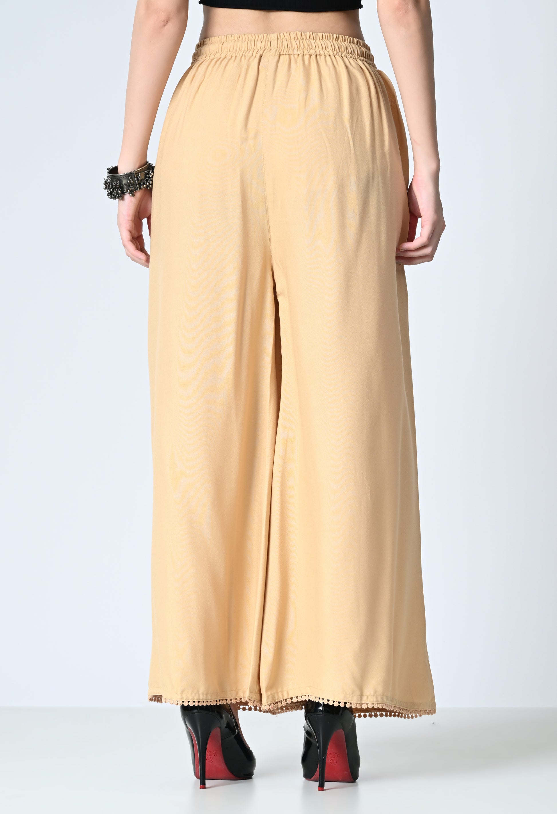 MAURYA Women Solid Rayon Palazzo with Elastic Waist & Lace Hem