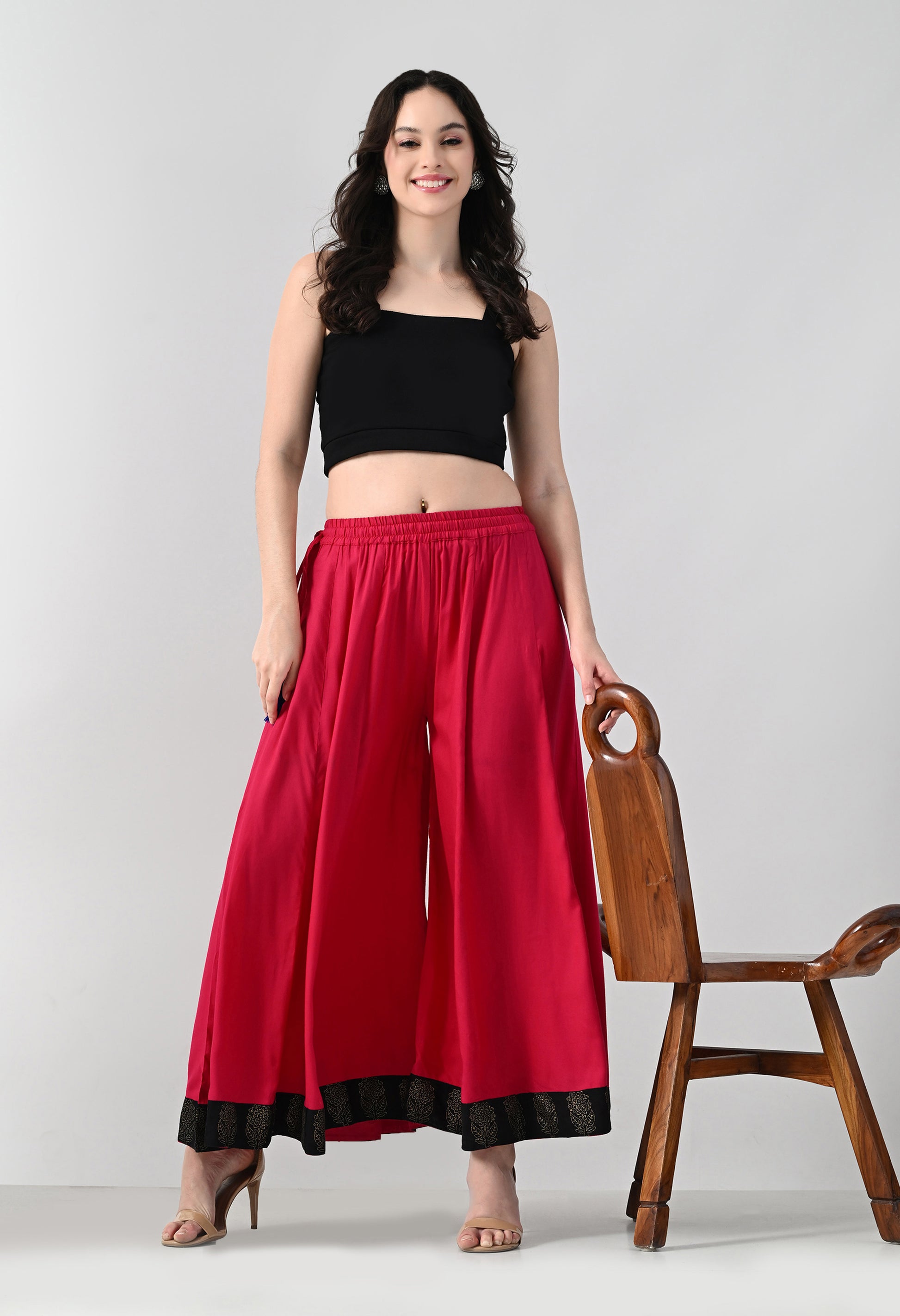 Upgrade your everyday ethnic and fusion wear with this stylish women’s solid rayon palazzo. Crafted from soft and breathable rayon fabric, this full-length palazzo offers all-day comfort with a smooth, flowy drape. Designed with an elasticated waistband, it ensures a flexible and comfortable fit for daily wear, office looks, or casual outings.