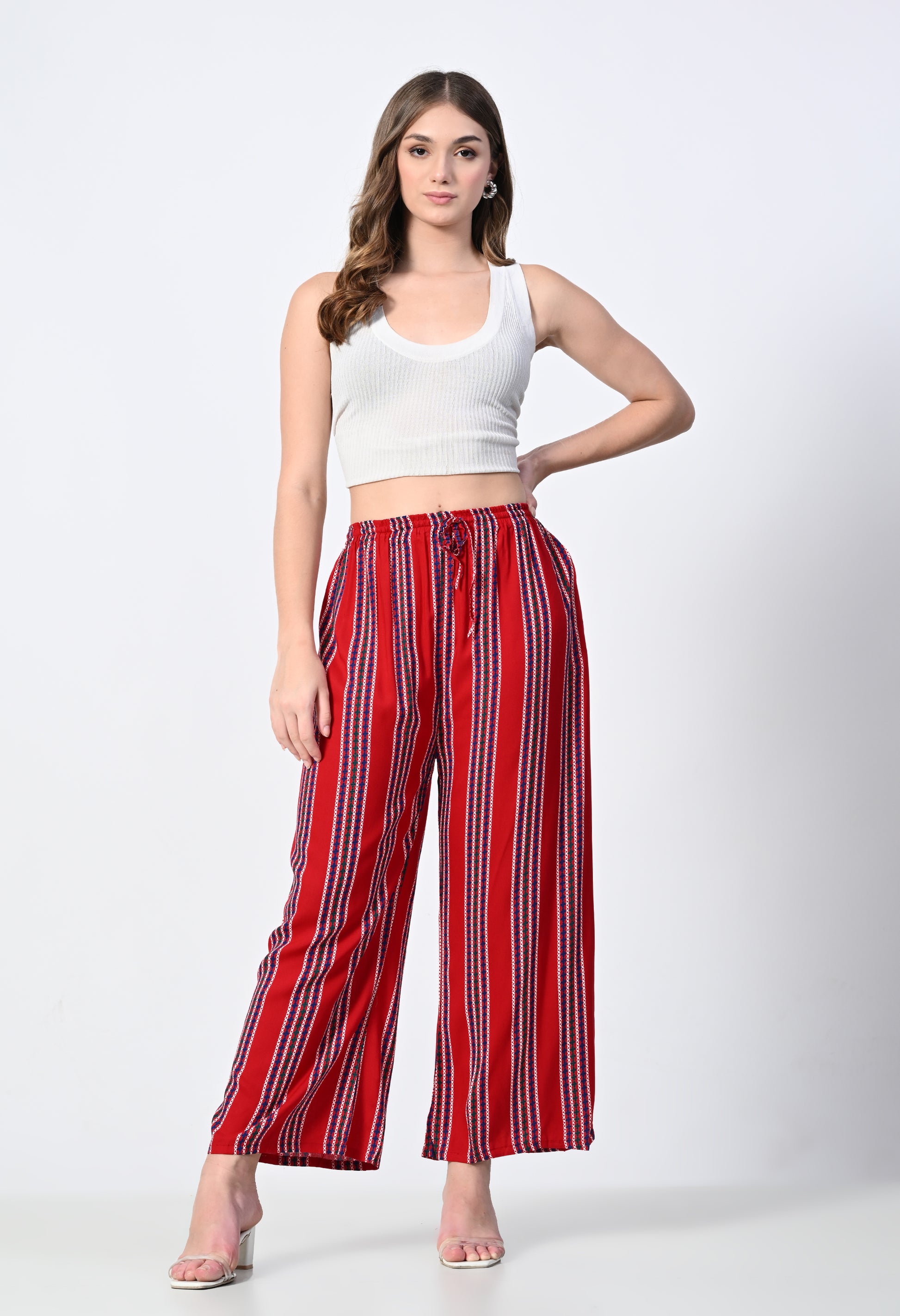 MAURYA Women Striped Rayon Palazzo with Elastic Waist