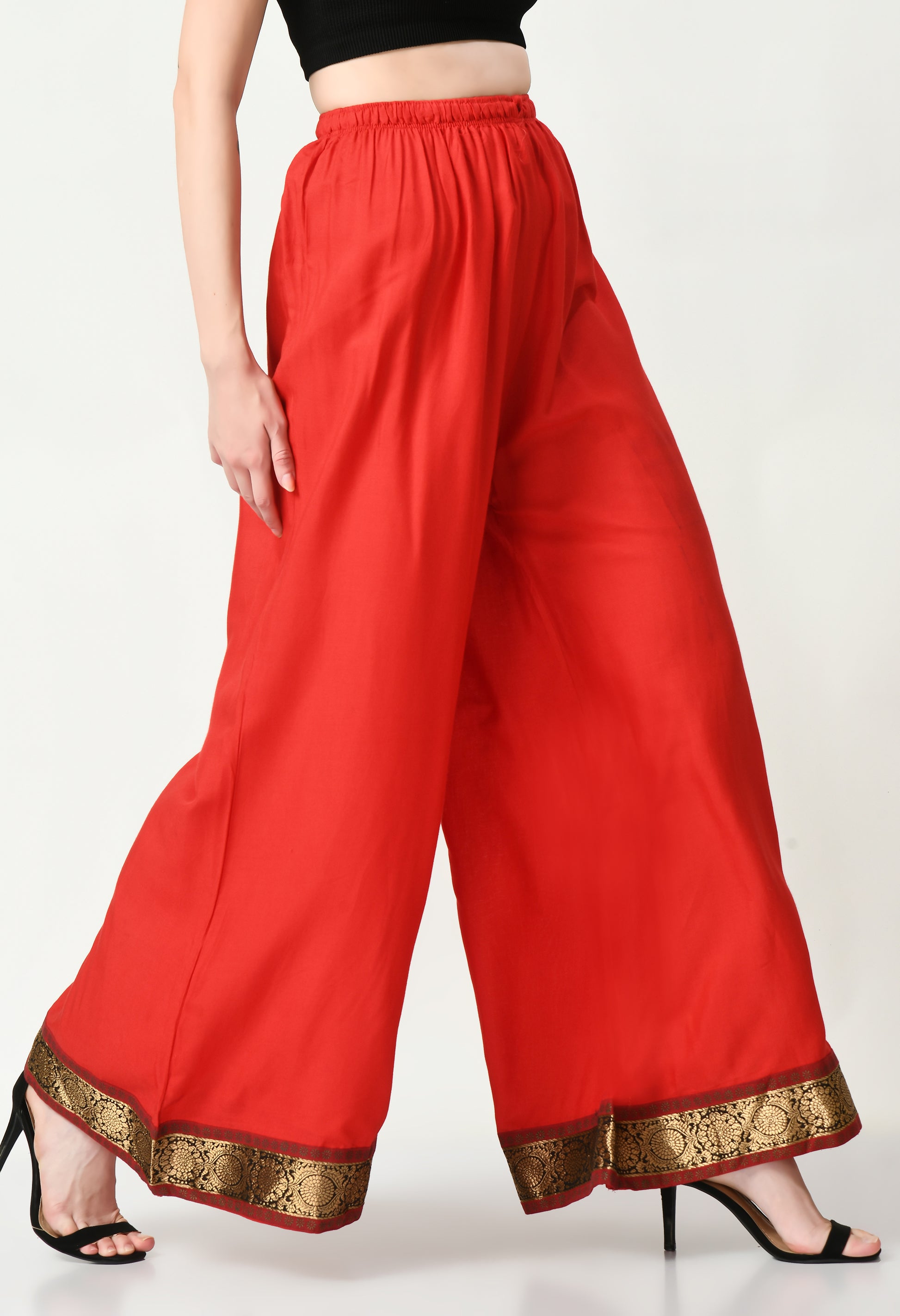 MAURYA Women Solid Rayon Palazzo with Elastic Waist & Lace Hem