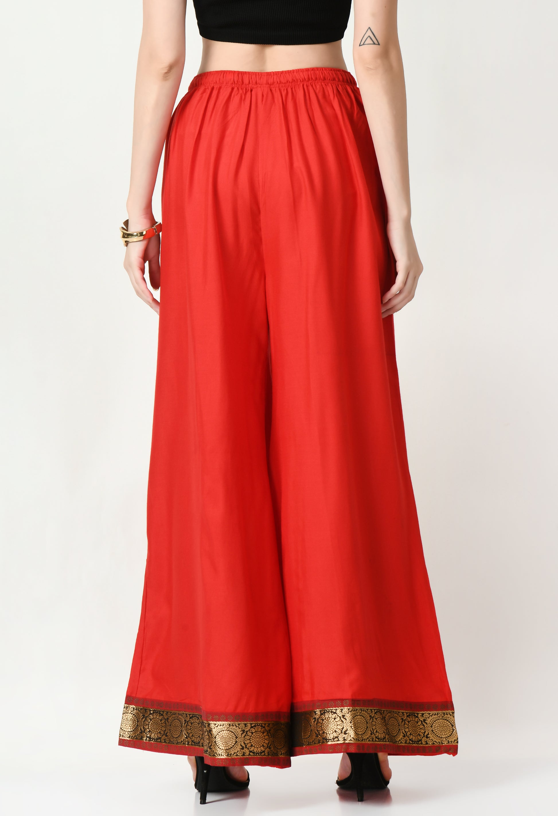 Upgrade your everyday ethnic and fusion wear with this stylish women’s solid rayon palazzo. Crafted from soft and breathable rayon fabric, this full-length palazzo offers all-day comfort with a smooth, flowy drape. Designed with an elasticated waistband, it ensures a flexible and comfortable fit for daily wear, office looks, or casual outings.