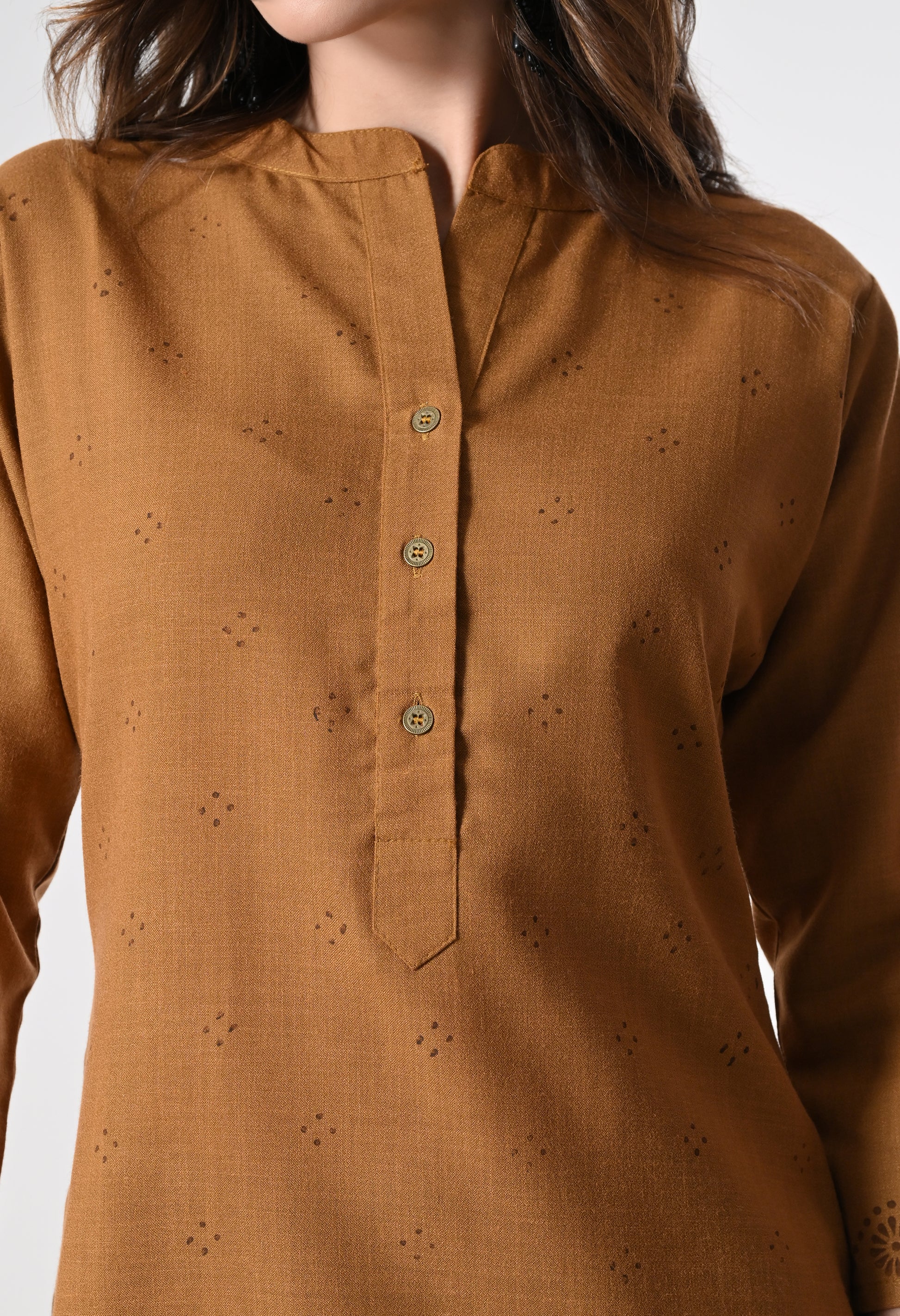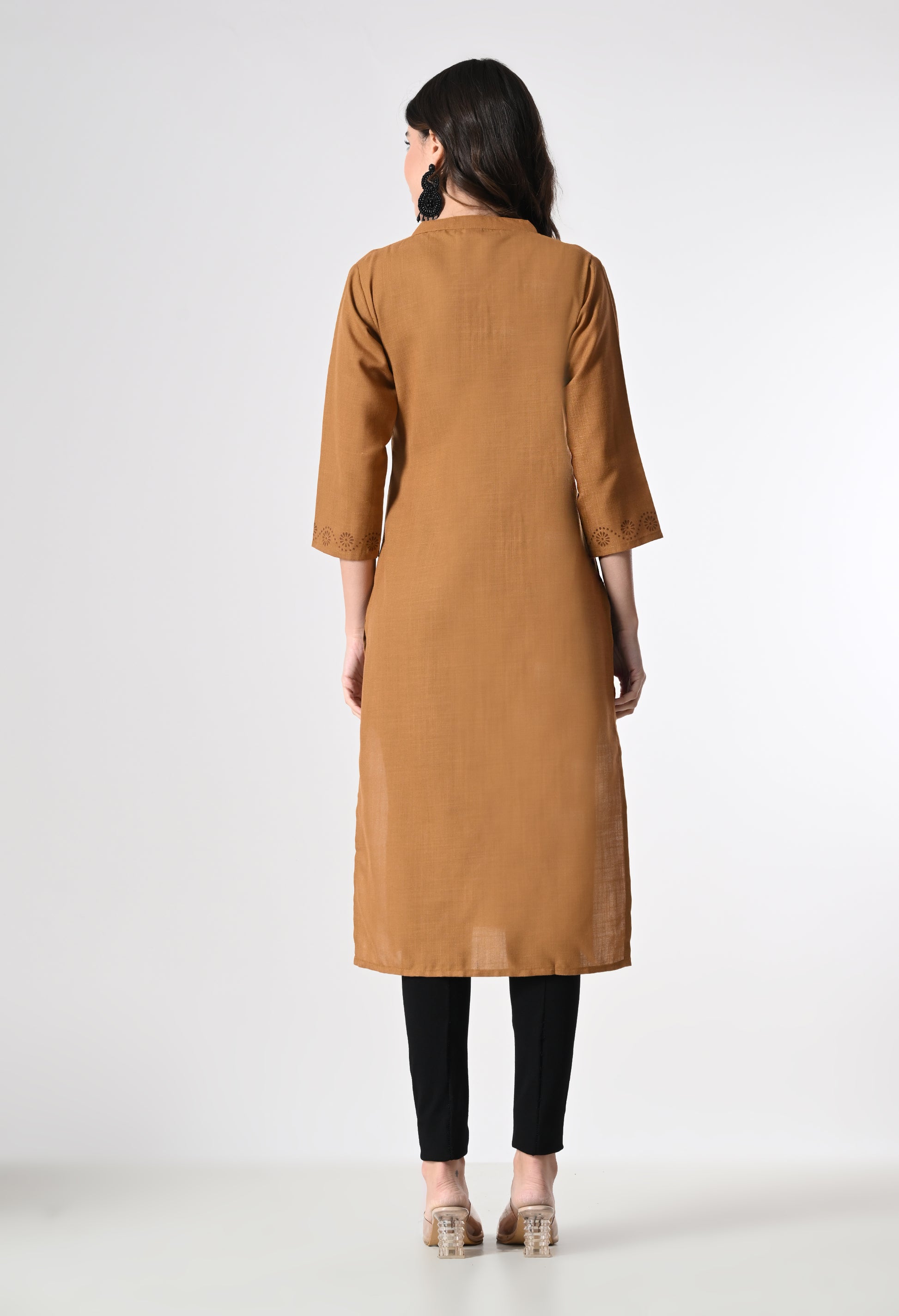 Refresh your everyday ethnic look with this block print straight kurti crafted from a comfortable cotton-blend fabric. Featuring all-over block print detailing and a functional button placket that opens fully, it offers ease of wear with timeless style—perfect for office wear, casual outings, or daily comfort.
