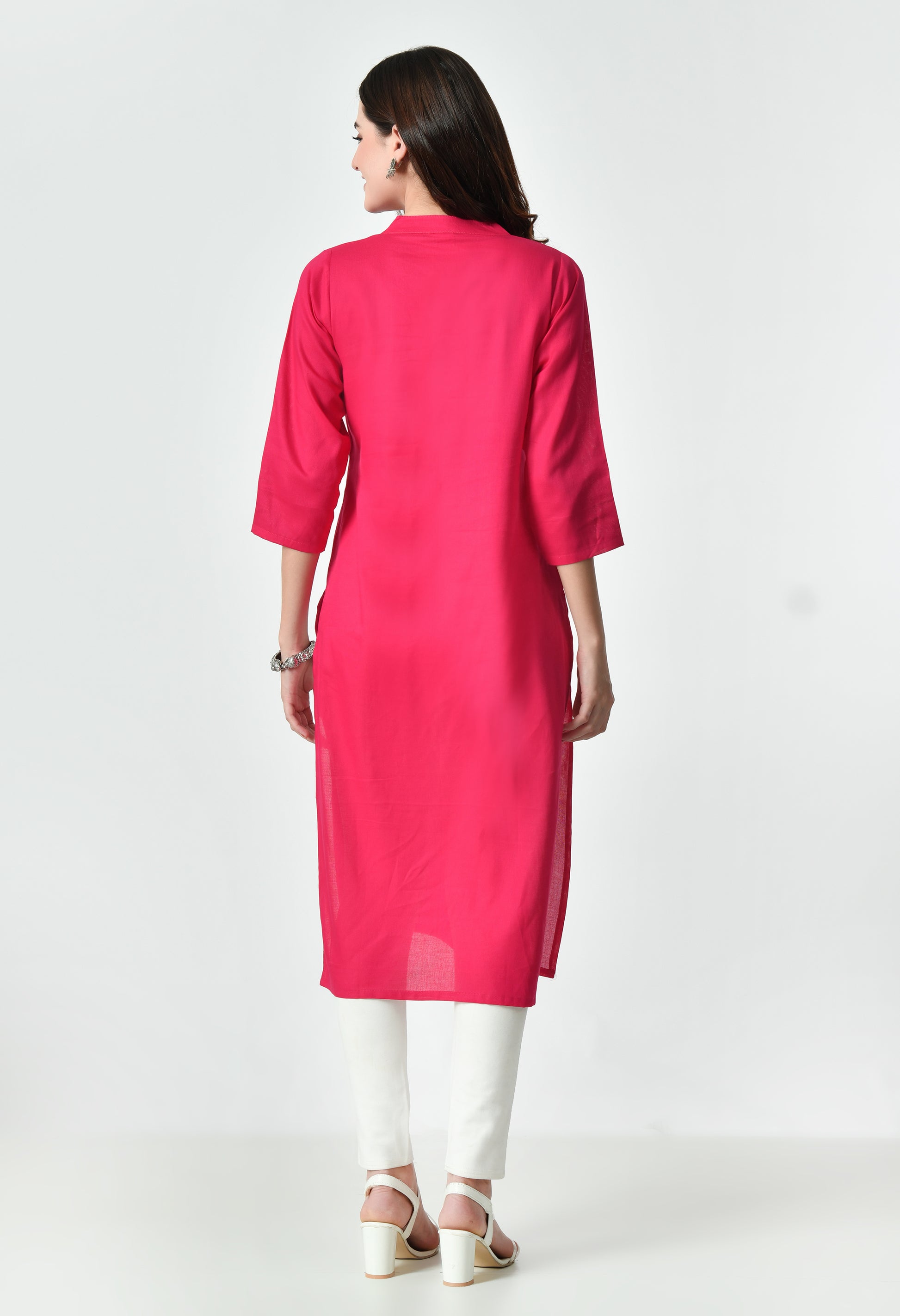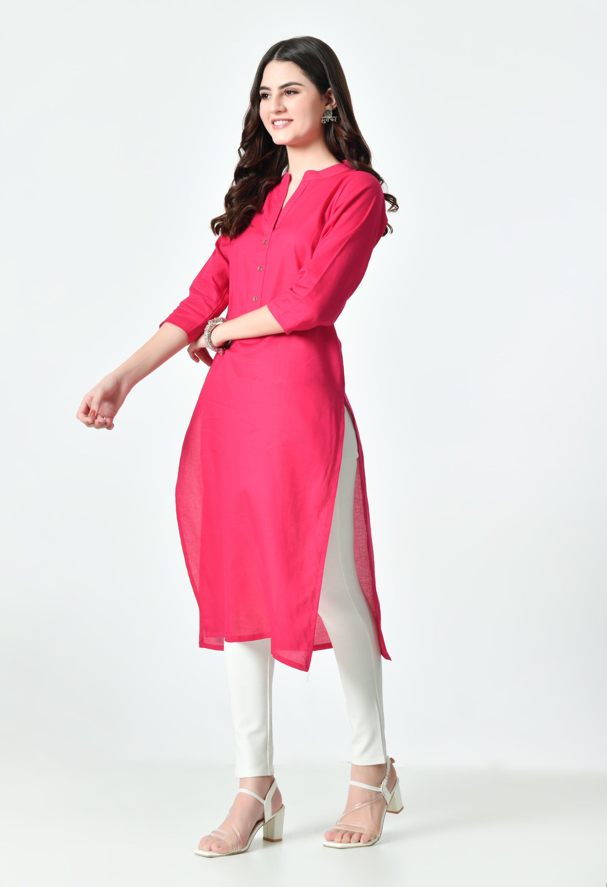 Keep your look effortlessly elegant with this solid straight kurti crafted from a soft cotton-blend fabric. Designed with a classic straight fit, it features a functional button placket that opens fully for added comfort and ease. Perfect for daily wear, office styling, or minimal ethnic looks.
