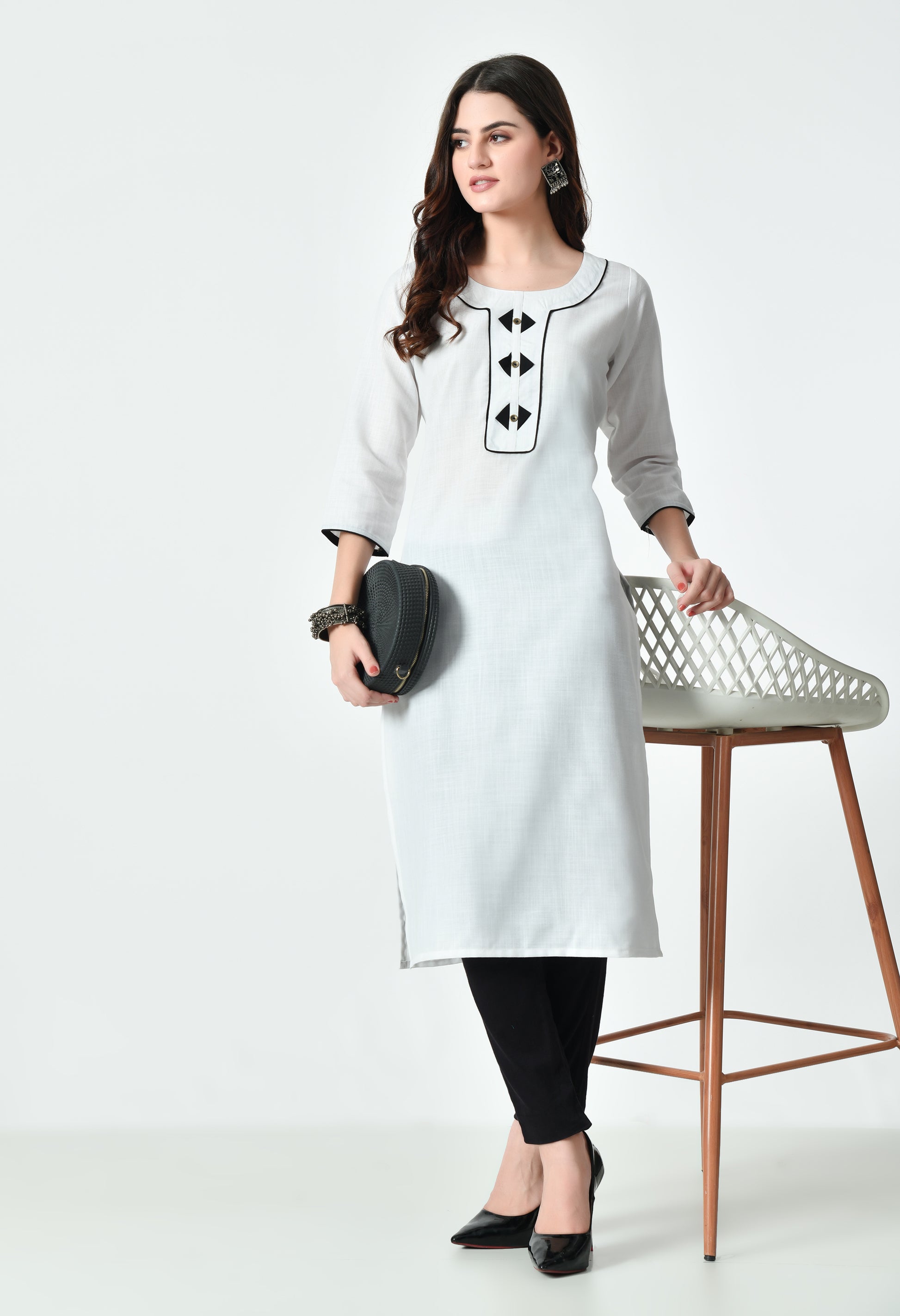 Elevate your everyday style with this solid straight kurti crafted from a soft cotton-blend fabric. Designed with a sleek straight fit and a stylish contrast placket, it offers a perfect balance of comfort and modern elegance—ideal for office wear, casual outings, and minimal ethnic looks.
