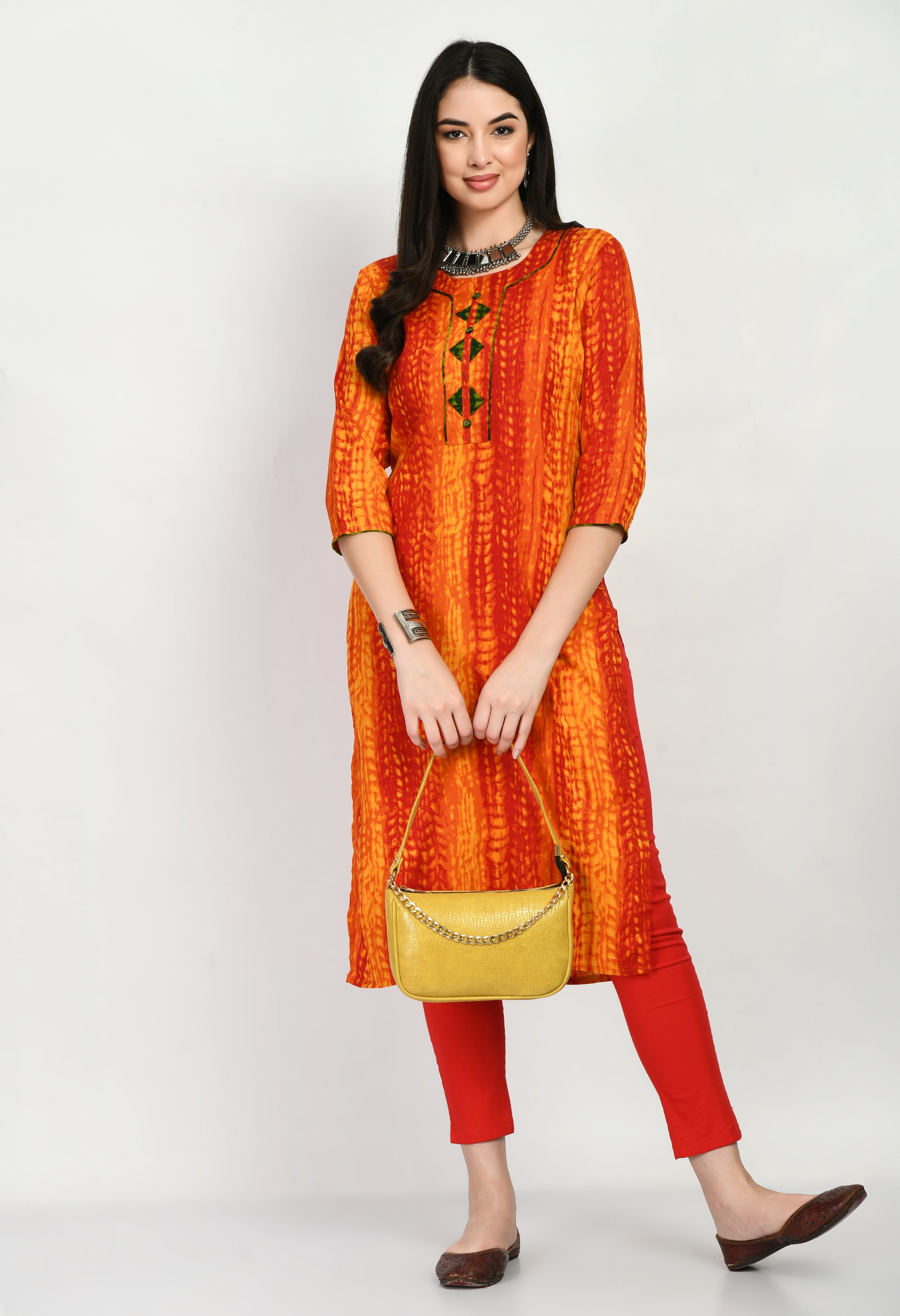 Add effortless elegance to your ethnic wear with this rayon Pathani straight kurti featuring a classic Batik print. Designed with a comfortable straight fit and a Pathani-style neckline, it offers a perfect blend of traditional charm and modern comfort—ideal for daily wear, office use, or casual outings.
