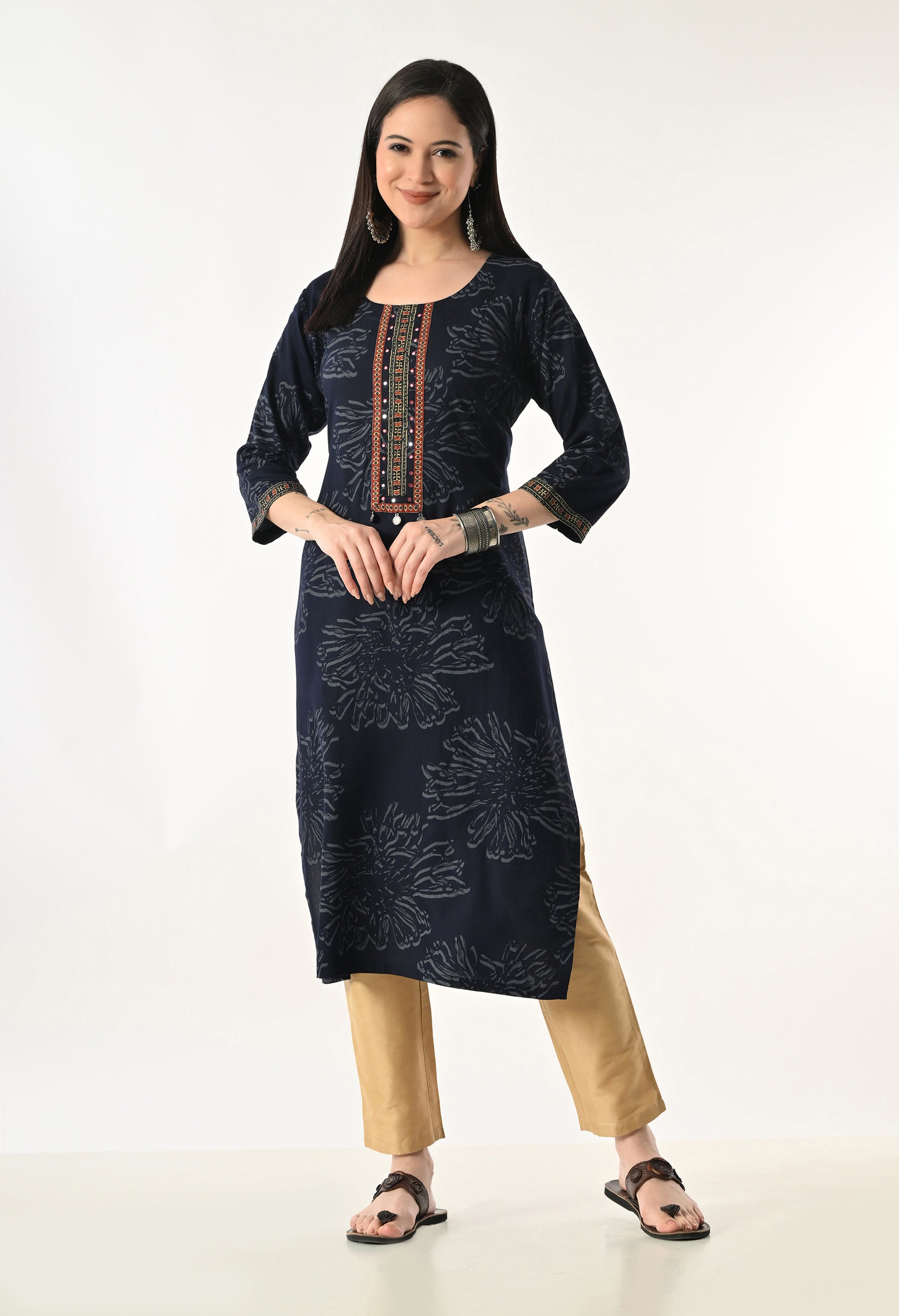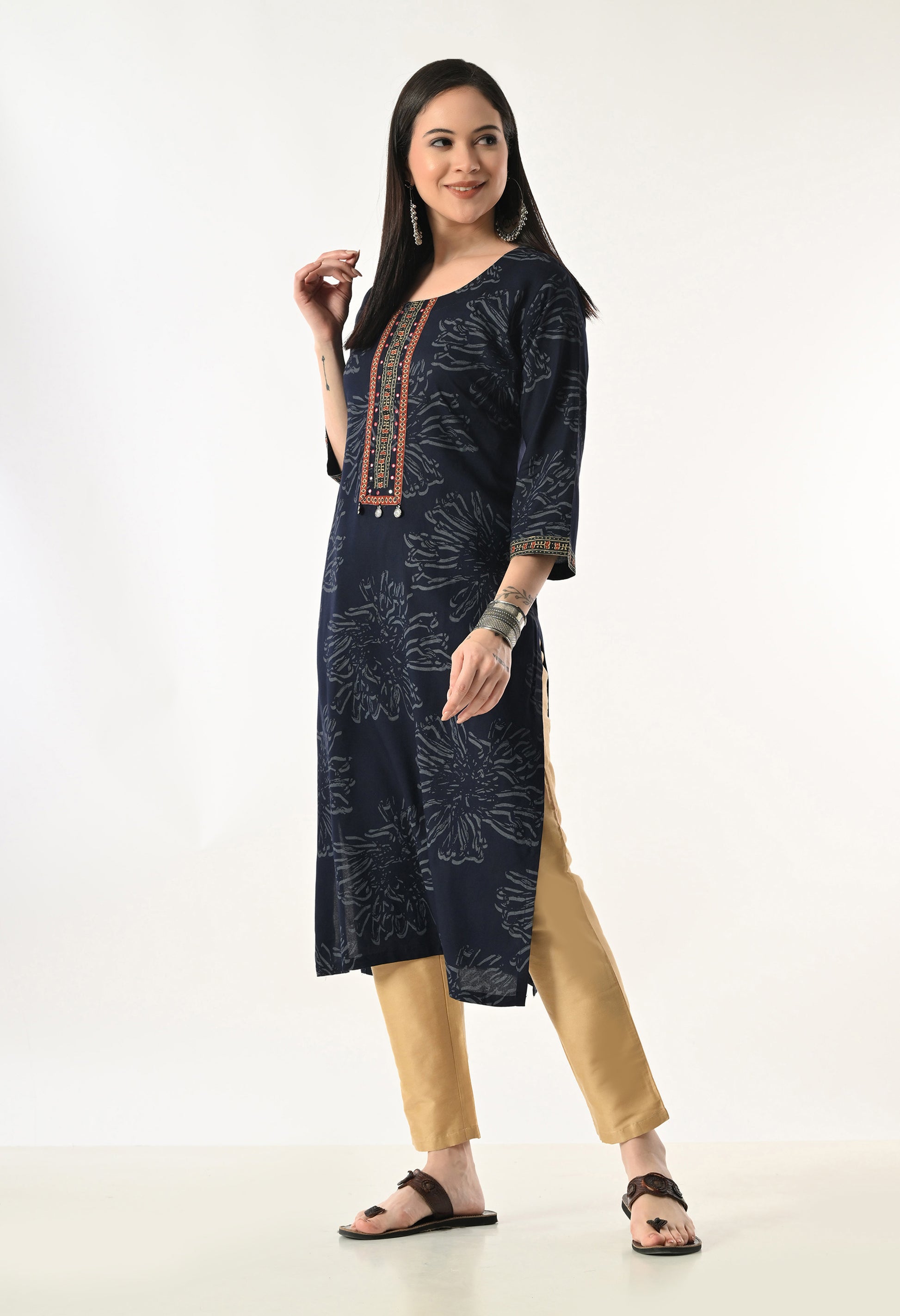 Elevate your everyday style with this rayon kurti featuring a graceful all-over floral print. Crafted from soft, lightweight rayon fabric, it offers a comfortable fit with a refined look, making it perfect for office wear, casual outings, and festive gatherings.