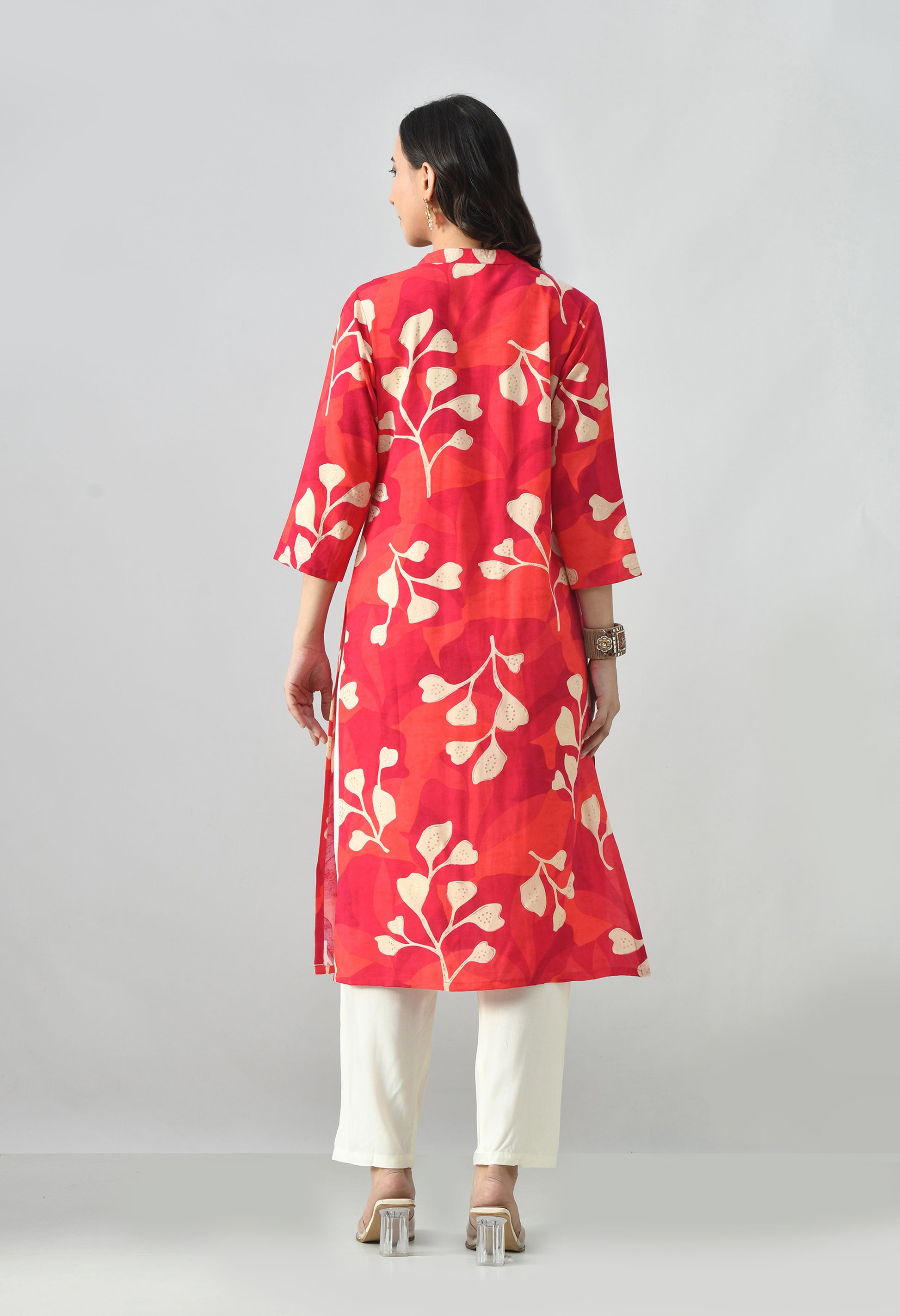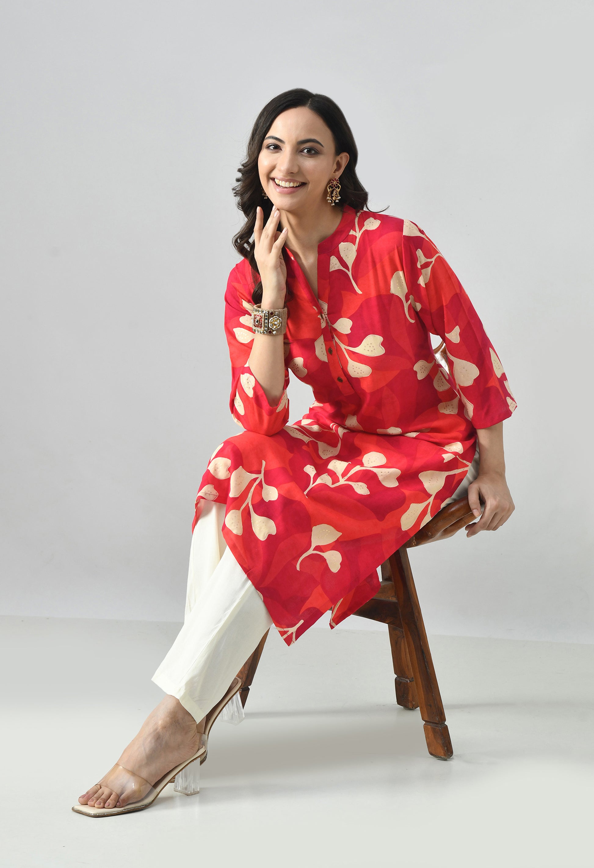 Refresh your ethnic wardrobe with this rayon kurti adorned with an elegant all-over floral print. Made from soft, breathable rayon fabric, it offers a flattering straight fit and effortless comfort—ideal for daily wear, office looks, or casual outings.