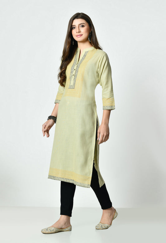 MAURYA Women's Light Yellow Colour Solid Straight Cotton Kurti (MKT149)